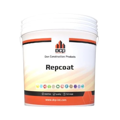 Protective Paint Repcoat Primer W, DCP Brand, a water-based acrylic paint used in interior and exterior applications as a primary protection layer on concrete surfaces, cement plaster and hollow blocks. It is characterized by its good adhesion, resistance to water and alkalis, withstands moisture, is easy to use, and is characterized by the protection of light paint layers from any discoloration or peeling.