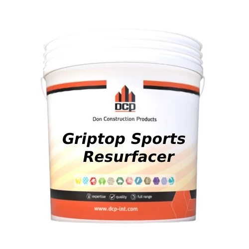 Griptop Sports Resurfacer Road Paint, DCP Brand, A water-based acrylic paint for use in resurfacing to fill and smooth asphalt or concrete surfaces prior to the application of sports surface coating systems allowing subsequent sports surface coating systems to have an even finish. High adhesion and water resistance. Easy to clean.