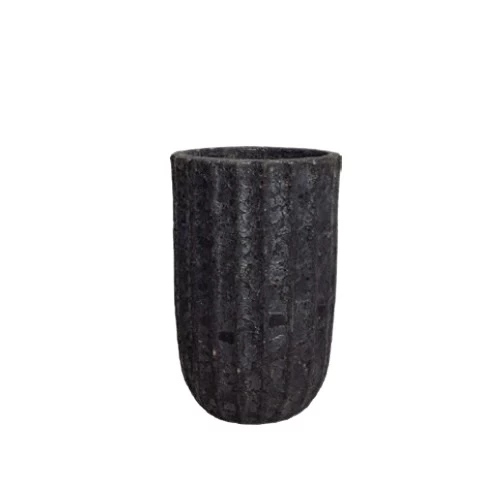 A concrete plant pot, 33 cm in width, 56 cm in height, black color. Made from concrete that withstands harsh and changing weather conditions, It is perfect for plant care with its modern design that suits all types of plants.