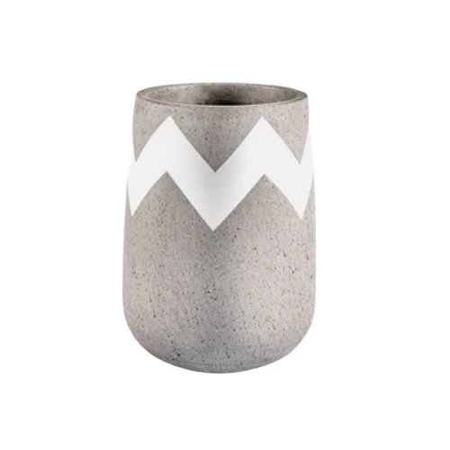 Concrete plant pot, with a height of 51 cm and a width of 37 cm, gray color with white accents. Durable and stylish, it is suitable for gardens and pathways, adding a touch of elegance to indoor spaces. Available in various sizes.