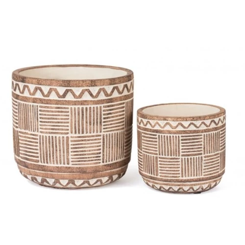 Fiber Cement Planter, combines strength with a lightweight design for easy transport, Size 16×17.5×17.5 cm, Brown, Round Shape.