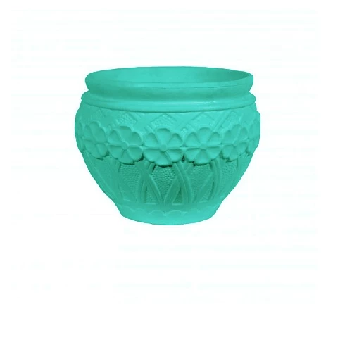 Flower pot small circular lacy Color baby blue brand Al zamil , flower pots are made of polyethylene , which is characterized by its high durability, light weight, and ease of carrying and moving it from one place to another.