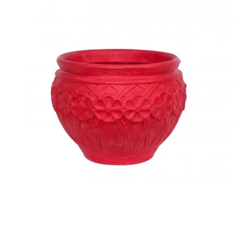 Flower pot small circular lacy Color brick brand Al zamil , flower pots are made of polyethylene , which is characterized by its high durability, light weight, and ease of carrying and moving it from one place to another.