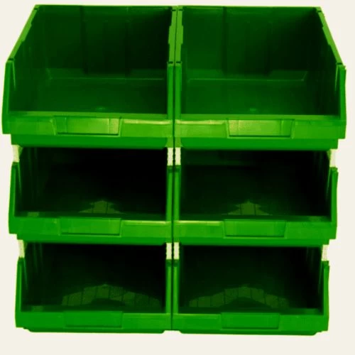 plastic Storage Bin is made of high-density polyethylene (HDPE). It features a lightweight design with built in handles for easy transportation. The box has a stackable structure to increase storage capacity and is resistant to chemicals and impacts, making it ideal for industrial environments. Its surface is easy to clean and perfect for storing tools and supplies. It is highly resistant to acids and solvents, helping improve work efficiency and inventory organization. It is suitable for factories, workshops, and commercial centers. Available in different colors and sizes to suit all tastes.