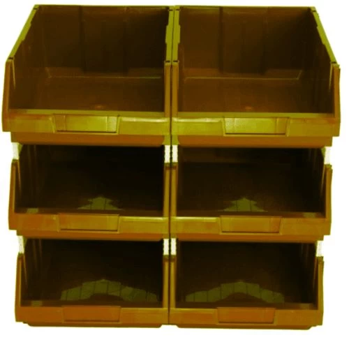 Polyethylene plastic storage bin, 25kg storage capacity, dimensions 51x30x20 cm, golden brown, it is highly resistant to acids and solvents, helping improve work efficiency and inventory organization.