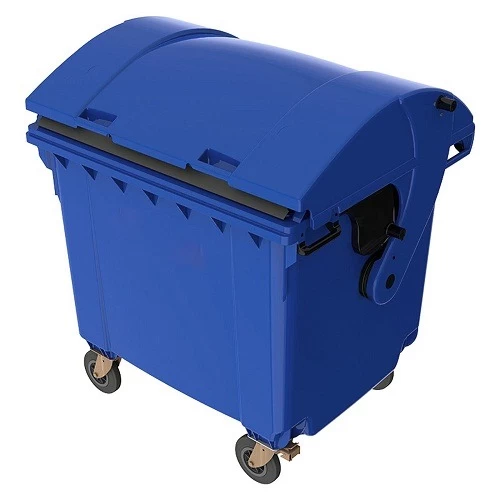 Plastic Waste Bin with Curved Lid Blue Color Capacity 1100 Liter Size 1.37×1.06×1.46 meter