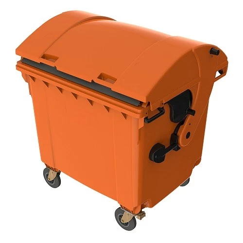 Plastic Waste Bin with Curved Lid Orange Color Capacity 1100 Liter Size 1.37×1.06×1.46 meter