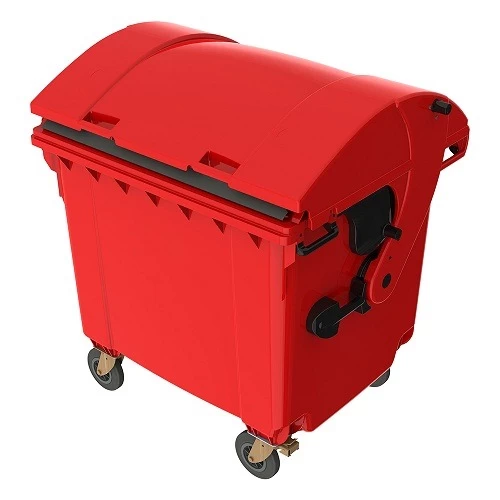 Plastic Waste Container with Curved Lid Red Color Capacity 1100 Liter Size 1.37×1.06×1.46 meter