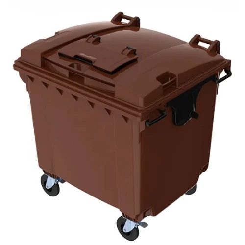 Plastic Waste Container with Double Lid Brown Color Capacity 1100 Liter Size 1.37×1.07×1.33 meter