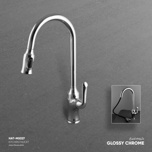 Kitchen Mixer, made of high quality brass and plated with 304 stainless steel, which is durable and resistant to corrosion and rust, which prolongs its life and withstands daily use and is easy to clean. It adds a touch of elegance to any bathroom decor, gives the place a luxurious look and maintains its brilliance. It is available in different shapes, sizes and colors to suit all tastes