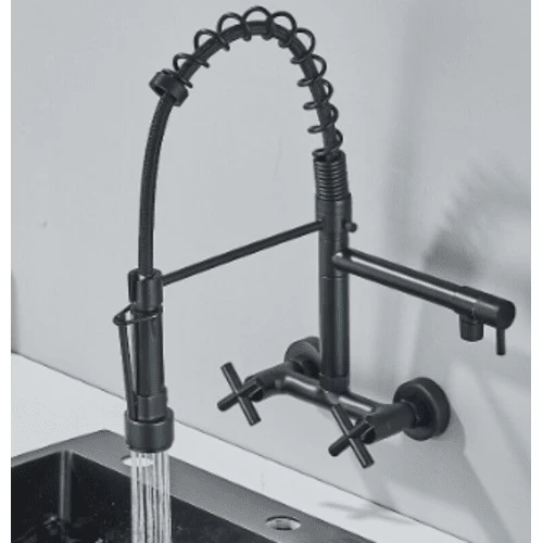 Wall mounted kitchen mixer pull out, size 43x20 cm, black color, made of high quality materials, which is durable and resistant to corrosion and rust, which prolongs its life and withstands daily use and is easy to clean.
