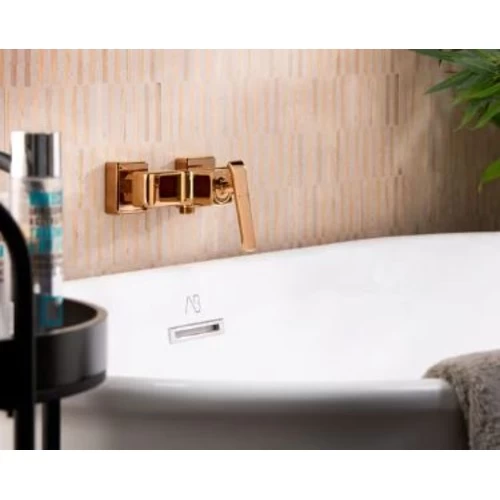 Rose gold shower mixer, height 33.5 cm, width 34.5 cm, length 46.5 cm, made of high quality brass, which is durable and resistant to corrosion and rust, which prolongs its life and withstands daily use and is easy to clean.