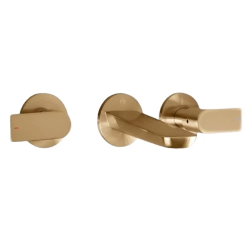 Wall-mounted water mixer, glossy gold color, 15 bar pressure, dimensions 19x8.6x32 cm, adding a contemporary touch to the bathroom without the need for an additional frame. Available in various colors to suit all tastes