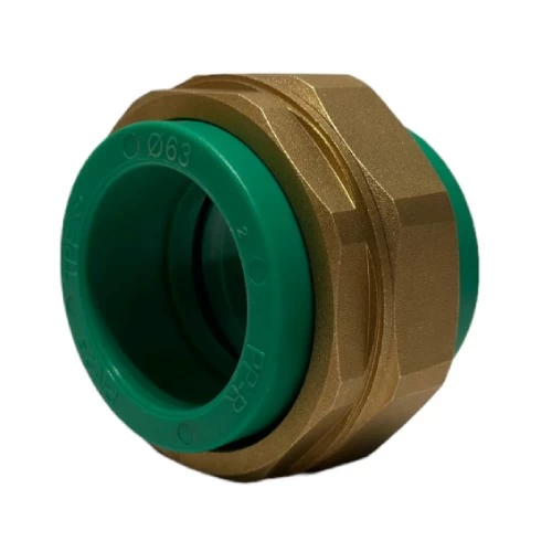 Buy now PPR Union Copper, from Thermal pipes factory (TPF), Pressure 25 Bar, Color Green, Environmentally friendly, easy to install and lightweight. Made of polypropylene. It is resistant to corrosion, rust and chemicals. It is not susceptible to stress cracking, which allows a continuous flow of water. It is easy to weld, which makes it the ideal choice for water networks, irrigation systems, greenhouses, gardens, and the transportation of liquid materials.