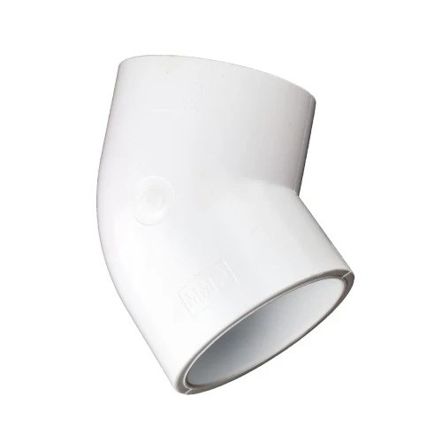 UPVC Elbow 45° Schedule 40 Size 1 ½ inch Color White Al-Munif, it is lightweight, easy to install, and resistant to corrosion to many chemicals such as salts, acids and bases.In addition, it is used for sanitation, water lines, and irrigation systems. Non pressure