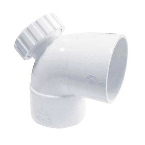 Shop now UPVC Plastic Elbow 87.5° With Door, from Al-Munif Pipes Company, Size 3 Inch, Color White, For use in sewage and drinking water systems, it is environmentally friendly, lightweight, easy to install, and corrosion resistant to many chemicals such as salts, acids and bases.