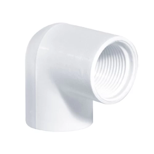 Get UPVC Plastic Elbow 87.5° With Female Thread, from Al-Munif Pipes Company, Size 1 1/2 Inch, Color White, For use in drinking water and wastewater systems, it is environmentally friendly, lightweight, easy to install, and corrosion resistant to many chemicals such as salts, acids, and bases.