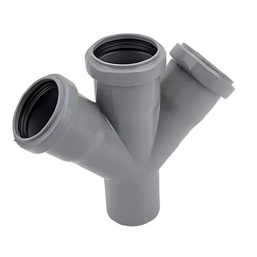UPVC Double Y Tee 45° produced by Cosmoplast Factory, made from unplasticized polyvinyl chloride (UPVC), characterized by their durability and resistance to UV rays, corrosion, and chemicals, it is rustproof and unaffected by humidity, making it suitable for use in humid environments or those exposed to chemicals. Lightweight and easy to install, It is used in above-ground drainage networks, ventilation systems, agriculture and irrigation systems. Available in a variety of sizes with the highest quality and the best prices.