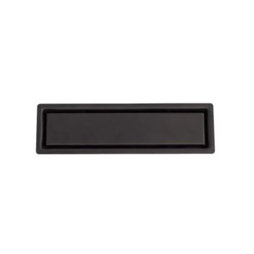 Water drainage grate, rectangular shape, size 30x6 cm, black color, Model number N116.504-11, designed with a rust and corrosion-resistant surface, making it ideal for use in humid environments such as bathrooms, kitchens, and sanitary facilities