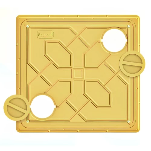 Manhole Covers Brand Al Arabia, made of composite, color yellow, size 603 × 603 mm, easy to carry, install and light in weight. This type of cap is characterized by corrosion resistance and a longer life span due to its ability to resist salts, oils and water vapor, even types of corrosive liquids such as sulfuric and hydrochloric acid, in addition to the ability to withstand according to British specifications.