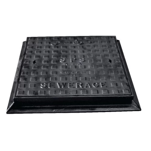 Manhole cover square cover and frame, size 400×400 mm, Produced by Saudi pipes systems factory according to BS 497, made of cast iron which is characterized by strong, durable and corrosion resistant material.