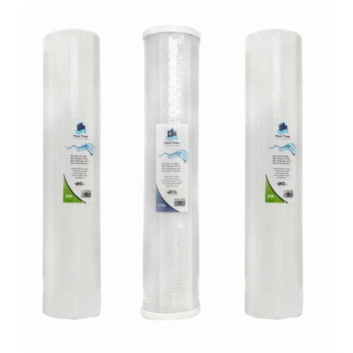Filter Water Cooler AquaTower triple jumbo, it is an impurity candle that removes all plankton in the water that can be seen with the naked eye such as dirt, rust, dust and sand, a carbon candle that removes chlorine, color, taste and odor in the water, a solid carbon candle with a pore of 5 microns that acts as a confirmation stage on the first stages Ensure that all impurities are removed from the water to ensure pure water.