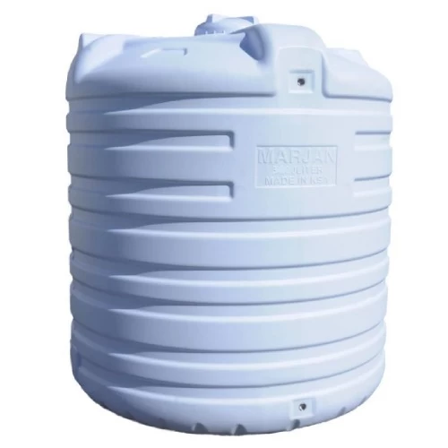 Blow Molding Water Tank, Vertical, with a capacity of 2000 liters, from Marjan Company, diameter 130 cm, height 150m, made of polyethylene, where polyethylene is melted in molds and hot air is blown, and it tolerates natural weather factors.Shipping and delivery available.