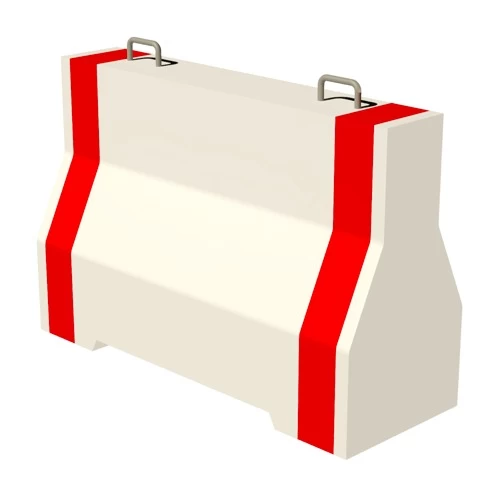 ٍConcrete Safety Barriers for Traffic, Reinforced, Color Red and White, Size 120*120*55 cm With Two Hooks, and Single Forklift Opening and Slotted Drain Holes