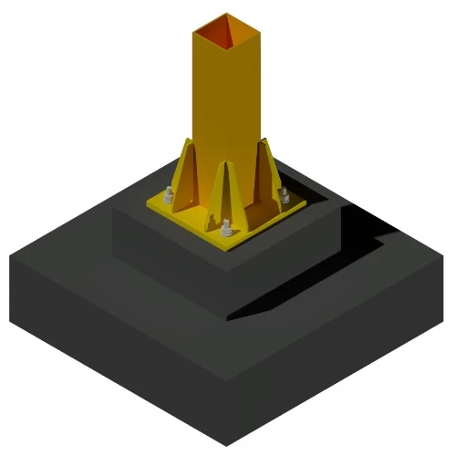 Concrete foundations with anchor bolt to fix the column to the base, in addition to an iron anchor base cast in concrete, used in construction and fuel station canopies.