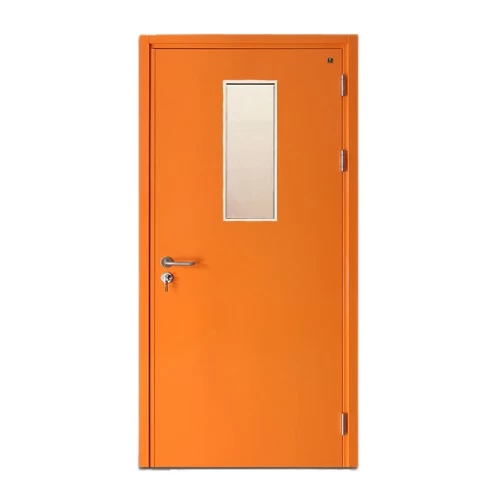 Fire door SFFECO galvanized steel with a rectangular glass window Model SF/SD Single Door leaf size 1950×900 mm Color Orange