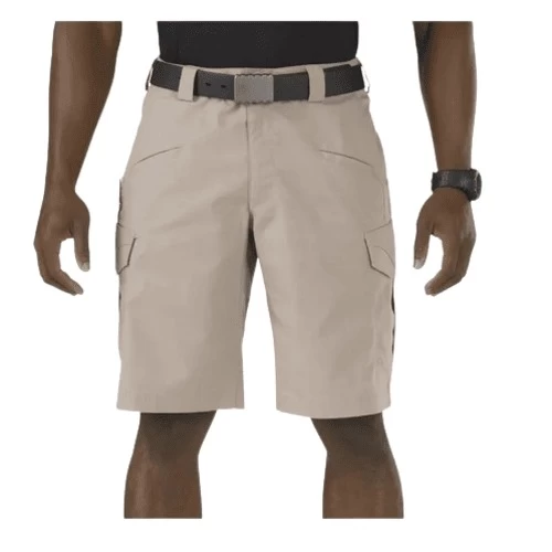 The 5.11 Tactical Stryke™ 11” Short, available in Tundra, Khaki, and Battle Brown, is designed to meet the demanding needs of tactical professionals and outdoor enthusiasts. Made from durable Flex-Tac® stretch ripstop fabric, these shorts provide unmatched flexibility and resistance to wear and tear. Treated with a Teflon® finish, they offer excellent water and stain resistance, ensuring durability in harsh environments. With 12 strategically placed pockets, including deep cargo pockets and front-reinforced pockets, they offer ample storage for essential gear. The self-adjusting tunnel waistband guarantees a comfortable and secure fit during high-intensity activities, while YKK® zippers add extra durability for long-lasting performance. Available in sizes ranging from 31 to 44, these shorts provide tactical functionality and comfort for a variety of field operations and outdoor activities.