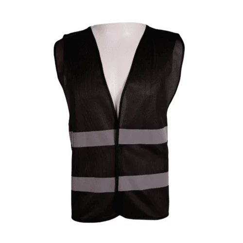 Medium duty safety vest, black color, with reflective strip and velcro, weight 1 kg, size xxl