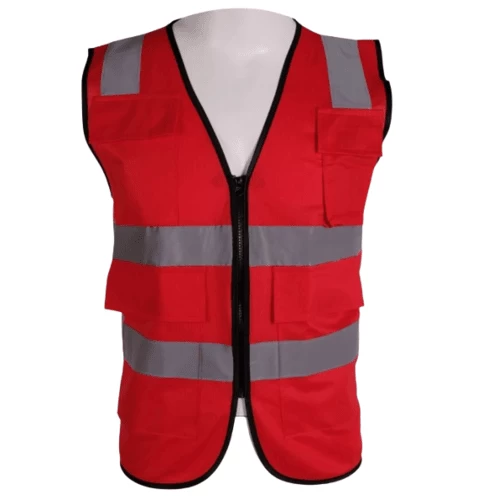 Professional heavy duty safety vest, with pockets and zipper, color Red, weight 1 kg, size xxl