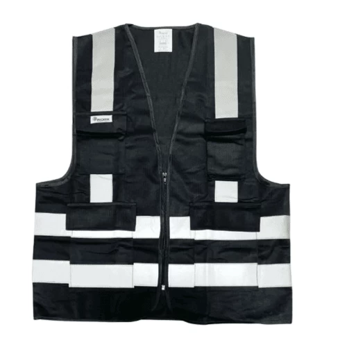 Reflective Safety Vest, Reflective strips, Size M, Black Color, 4 Pockets, Polyester