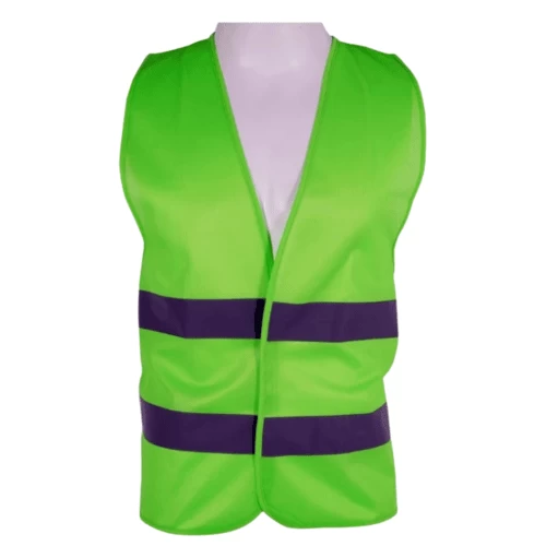 Durable green safety vest equipped with a high-quality reflective strip and adhesive for clear visibility. Size (5XL), weighing 1 kg with a durability of 100 grams, making it ideal for use in projects, airports, factories, and institutes.