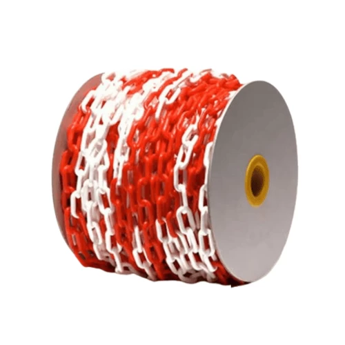 The plastic road barrier chain is a safety product made of plastic, available in four different sizes and designed in rings. This chain, originating from China, is primarily used to protect pedestrians from incorrect crossings and to guide them along roads and directions, thereby enhancing safety on roads and public areas.