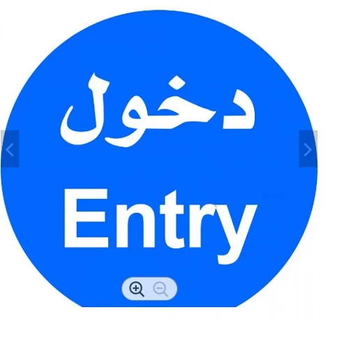 Circular guidance sign ENTRY, size 60x60 cm, made of aluminum, blue Color, It is suitable for indicating entrances to public or private places, guiding road users along roads, and informing them of the destination and distance.
