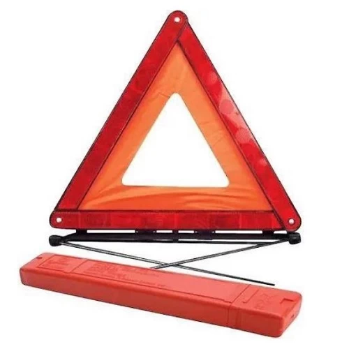 Collapsible warning triangle is made from a plastic-metal material, making it lightweight, it features enhanced reflective material to improve visibility at night or in poor weather conditions, ideal for use on highways and areas requiring alerts for drivers or individuals about the presence of hazards or danger zones, it can also be used at construction sites or any places that require visible warnings.