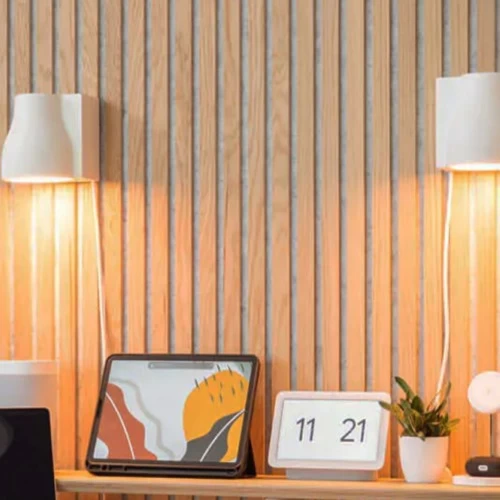 Indoor soundproof cladding made of eco-friendly MDF and high-density acoustic polyester fibers, providing excellent sound and light insulation, creating a quiet and comfortable environment. It features a wood-like design that adds a luxurious touch to any space. The cladding is easy to install and maintain, and it is resistant to scratches and pests, ensuring long-lasting durability and continuous use. It is highly durable, making it perfect for spaces that require excellent soundproofing such as rooms, offices, and meeting halls. Available in various designs and colors to suit all tastes.