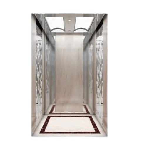 مصعد ركاب بدون غرفة ماكينة يتمتع بتصميم داخلي يعكس الفخامة من خلال الجدران الرخامية ذات التأثير العاكس والمحفورة بدقة، مما يمنح شعورًا بالاتساع واللمعان. الإضاءة العلوية مصنوعة من ألواح أكريليك تبعث ضوءًا ناعمًا ومريحًا. الأرضية من مادة PVC عالية التحمل وسهلة التنظيف، مناسبة للاستخدام اليومي المكثف. التصميم لا يحتوي على درابزين، ما يمنح مساحة داخلية أكثر انفتاحًا. كنظام MRL، لا يتطلب غرفة ماكينة منفصلة، بل يتم دمج وحدة المحرك والتحكم داخل البئر، مما يقلل من استهلاك الطاقة ويوفر مساحة معمارية أكبر. مناسب للمباني السكنية أو الإدارية ذات المساحات المحدودة. متوفر بتصاميم ومواصفات مختلفة تناسب جميع المشاريع.