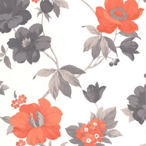 ورق جداري بريطاني، لون ابيض مع برتقالي، تصميم ورود، مقاس 10 م×0.53 م، موديل 32454