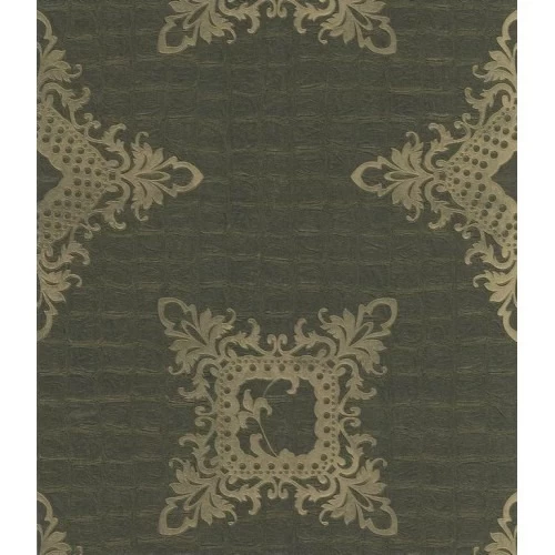 ورق حائط إيطالي لون أخضر داكن تصميم نقشات، مقاس 10 م × 0.70 م، موديل 13034