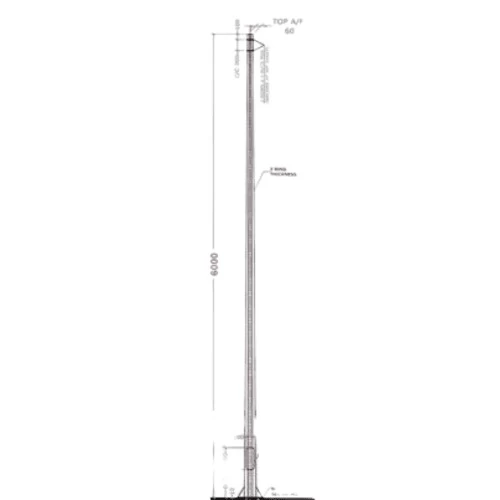 عمود انارة المنيوم ارتفاع 6 متر، قاعدة التثبيت 900 مم، سمك 3 مم