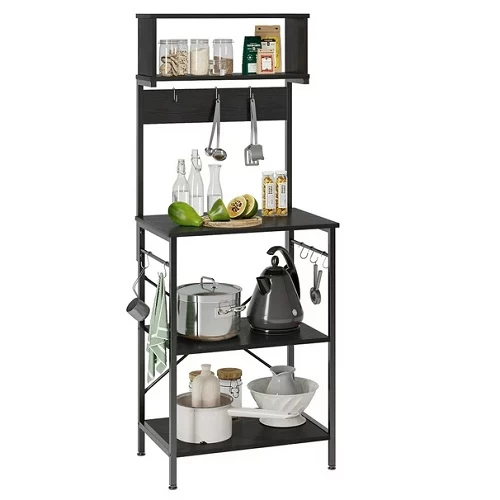 ستاند مطبخ من الخشب والمعدن 5 ارفف ارتفاع 153 سم، عرض 60 سم، عمق 40 سم، لون اسود مصنع ريفيد، تستخدام في المطبخ أو أي مكان آخر في المنزل حيث يكون هناك حاجة لتخزين الأواني والأدوات بشكل منظم