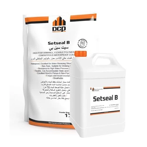 دهان عزل مائي سيت سيل بي، براند دي سي بي، طلاء أسمنتي عازل للماء مرن معزز بالأكريليك المطاطي وذو مكونين للتطبيقات الداخلية والخارجية، للإستخدام في منشآت حفظ مياه الشرب والخزانات والتسويات والأساسات والقنوات المغلقة والخرسانة، يتحمل الشقوق، يسمح بنفاذ بخار الماء من خلاله.