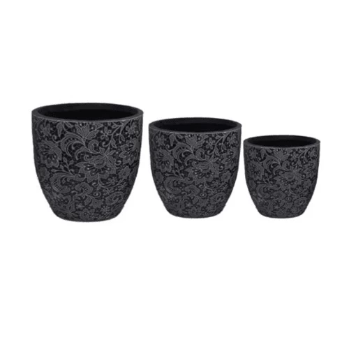 حوض زرع فايبر جلاس، عرض 35.5 سم عمق 37 سم ارتفاع 37 سم، شكل دائري، لون اسود.