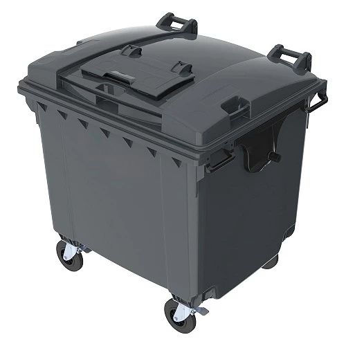 حاوية نظافة بلاستيك بغطاء مزدوج لون رمادي داكن سعة 1100 لتر مقاس 1.37×1.07×1.33 متر