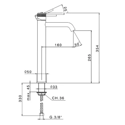 خلاط مغسلة ارتفاع 35.4 سم، عمق 16 س...