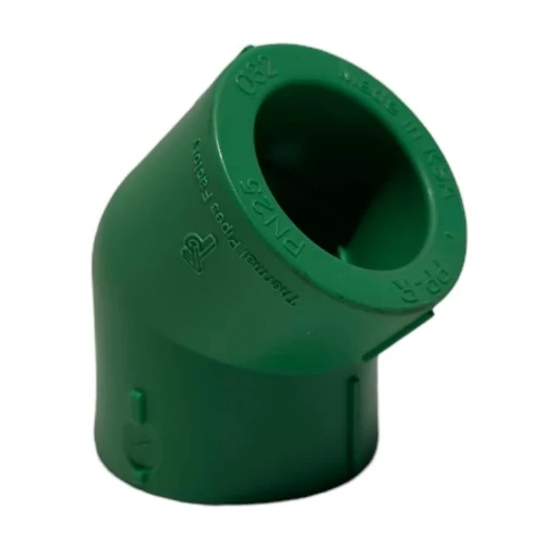 كوع بلاستيك PPR فاتح 45 درجة المصنع الحرارى للأنابيب مقاس 32 مم ضغط 25 بار مم لون اخضر