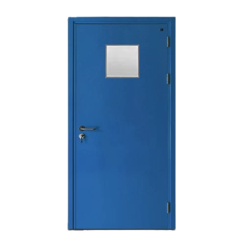 باب طوارئ ٍسفيكو صلب مجلفن مع نافذة زجاجية مربعة موديل SF/SD فردي حجم الباب 900×1950 مم لون ازرق